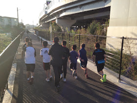 今朝は8人の子どもとオッサンで元気に朝ジョグ。