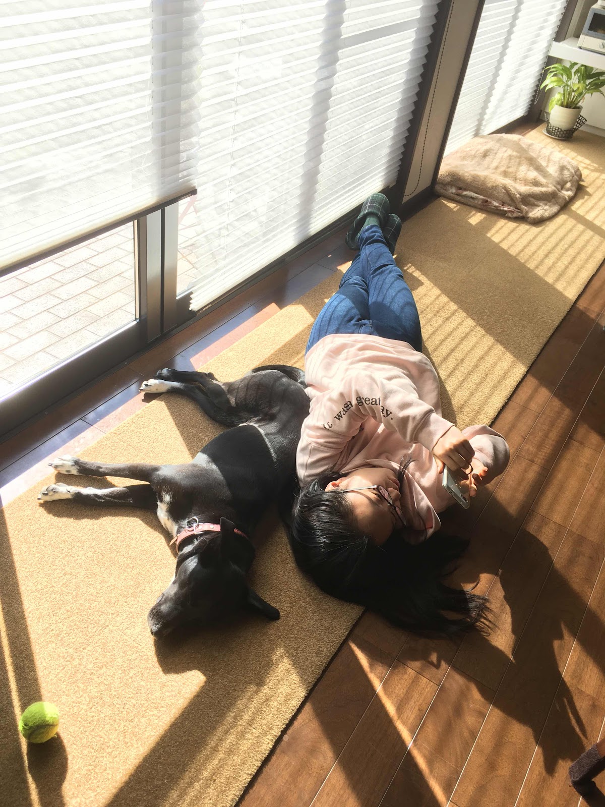 室内は結構暖かくて日当たりの良い場所は犬にも人間にも人気があります。