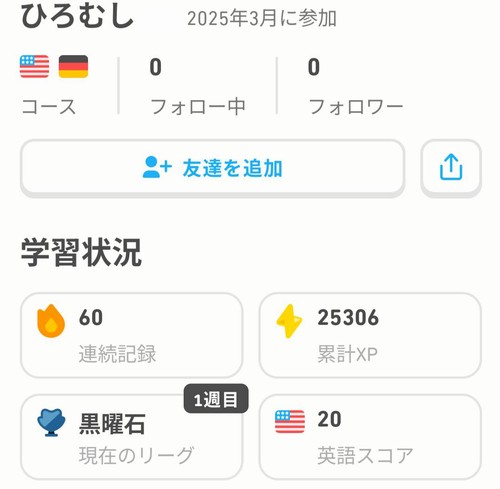 毎日無料版でコツコツとDuolingoを続けてますが、1位の人との差が縮まるどころか広がり続けます。